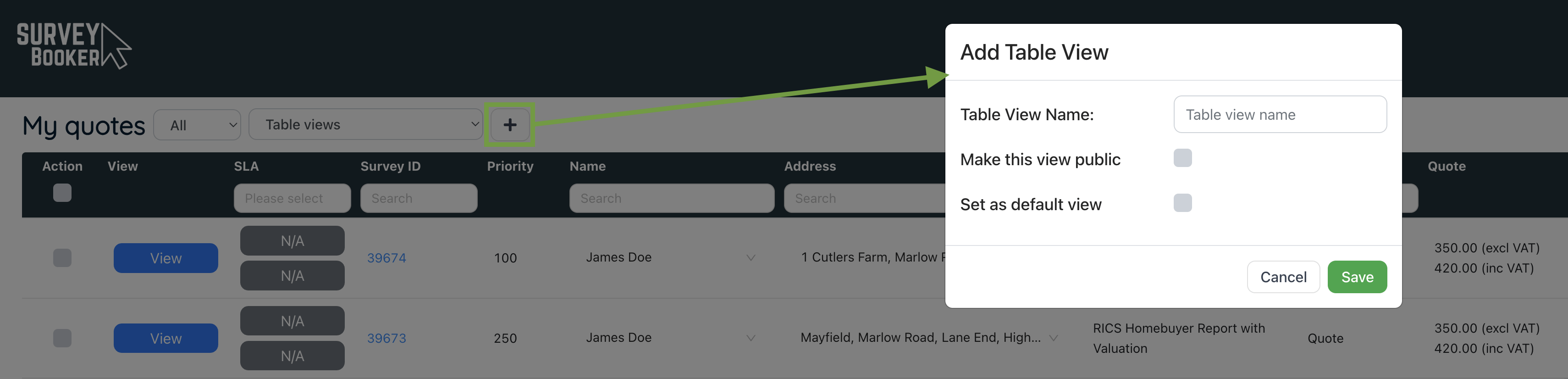 See our guide on customising your table columns: https://support.surveybooker.co.uk/customising-your-quotes-and-jobs-tables/